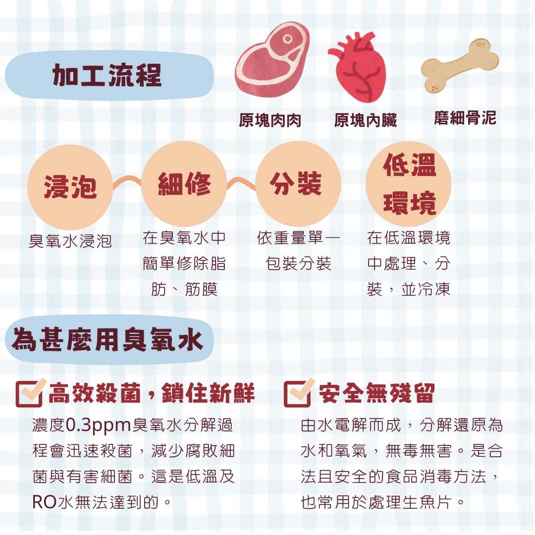 毛孩盡量避免食用未煮熟之海鮮,因未熟透之海鮮還有硫胺素酶,會影響維生素B1的吸收率,故海鮮類建議烹煮至熟透、且注意是否有細刺,再給予毛孩。 品項 無骨雞腿220克(台灣), 雞心100克(台灣), 土雞肝50克(台灣), 土雞肝100克(台灣), 雞骨泥100克(台灣), 藍莓50克(加拿大), 碎雞胸150克(台灣), 雞胗150克(台灣), 白帶魚300克(台灣), 鮭魚500克(智利), 長腰鮪魚220克(台灣) 商品評價 目前沒有評價。 搶先評價 “單一品項”取消回覆你必須登入才能發表評論。Login with your Social ID